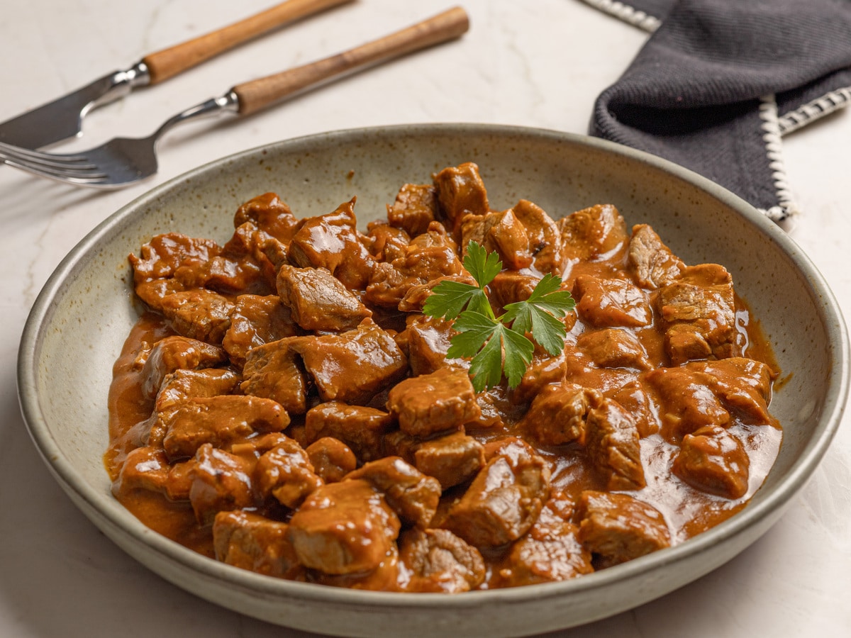 O picadinho está pronto! Transfira para uma travessa ou prato de sua preferência e sirva no almoço ou jantar acompanhado de arroz, legumes ou outro acompanhamento de sua escolha.